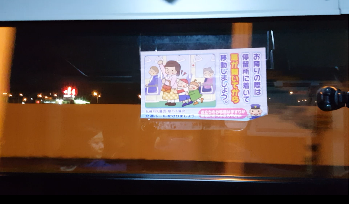 숙소로 이동을 하는 중에 버스에 경고문?같은 것이!!